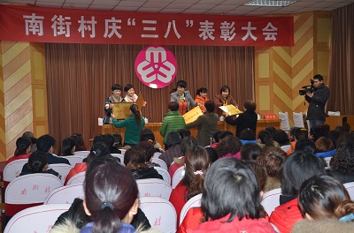 今年的3月8日是第104个国际劳动妇女节,这天上午,全村近300名妇女在文化园影视厅参加庆“三八”表彰大会,村妇联会对评出的妇女先进集体和个人进行了表彰。 经过各单位层层选拔和评比,全村共评出37名“妇女先进工作者”、6名“三八红旗手”、1个“五好文明家庭”、3名“好婆婆”、4名“好媳妇”、4个“先进妇代会”。村党委副书记刘小清、妇联会副主任赵瑞莉等为获奖单位和个人颁发了奖牌和荣誉证书。“先进妇代会”代表彩印公司办公室主任杨瑞、“妇女先进工作者”代表方便面厂带班长董艳华、“三八红旗手”代表调味品公司质检科科长朱小华、“好媳妇”代表啤酒公司行管科科长曹保花分别发言。妇联会黄晓丹回顾了2013年妇联会整体工作,并通报了2014年工作计划。 村党委副书记刘小清对过去一年来妇女同志在南街事业中所发挥的“半边天”作用给予充分肯定,向涌现出的妇女先进集体和个人表示祝贺!希望全体妇女争做技能型、知识型、实干型职工,做自尊、自信、自立、自强,健康、文明、向善、向上的新一代女性。她要求广大妇女要认清形势、坚定信念,紧紧围绕村党委提出的全年工作指导思想开展工作;要志存高远,树立远大目标,加强学习,在提升自身素质中不断进步;要弘扬美德、引领时尚,在南街村讲文明树新风中起好表率作用。